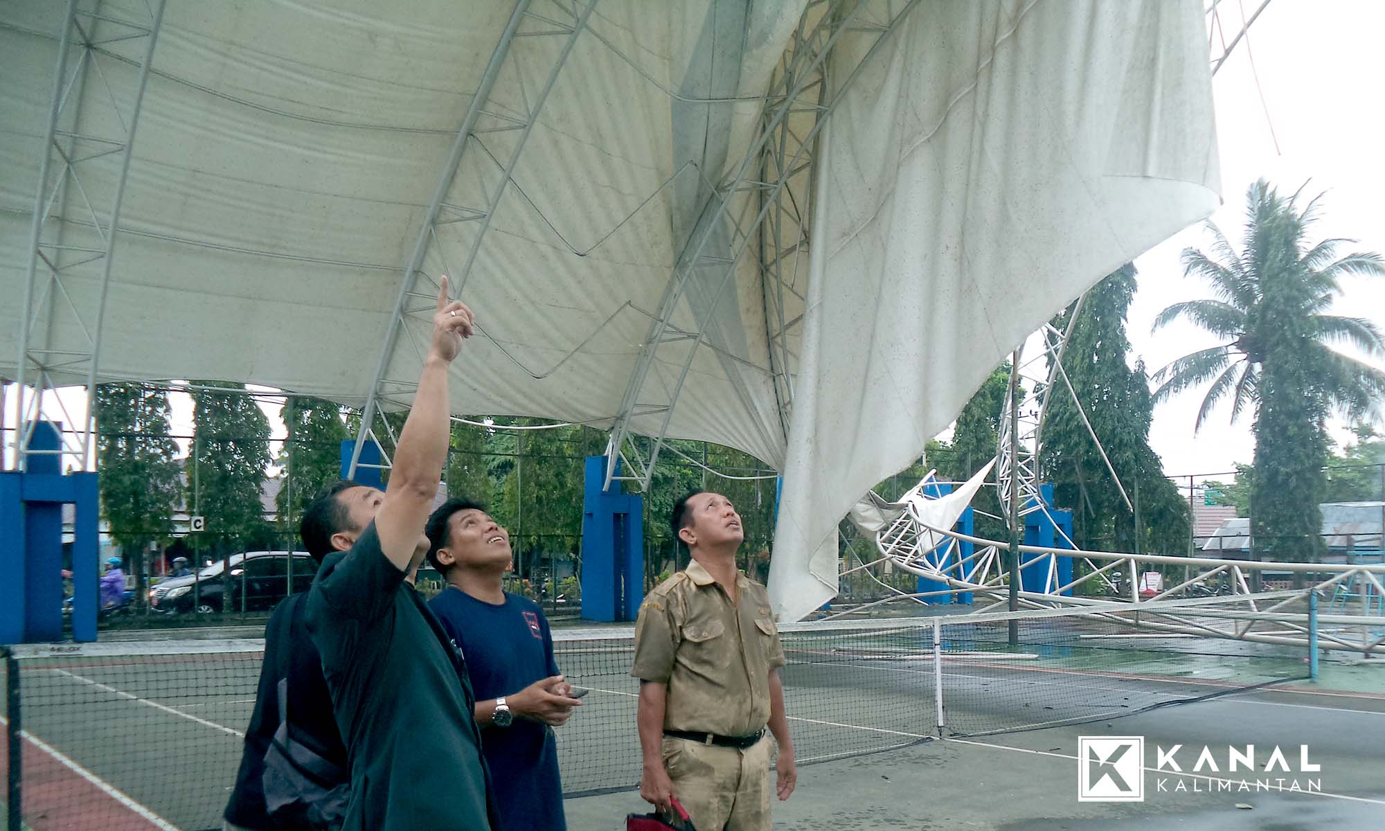 Saksi mata saat kejadian, Agus Dariyanto, pengelola harian lapangan tenis Kayu Tangu mengatakan, tak mengira hujan yang disertai adanya angin kencang, sekitar pukul 16.00 Wita itu membuat ambruk atap kanopi lapangan tenis.