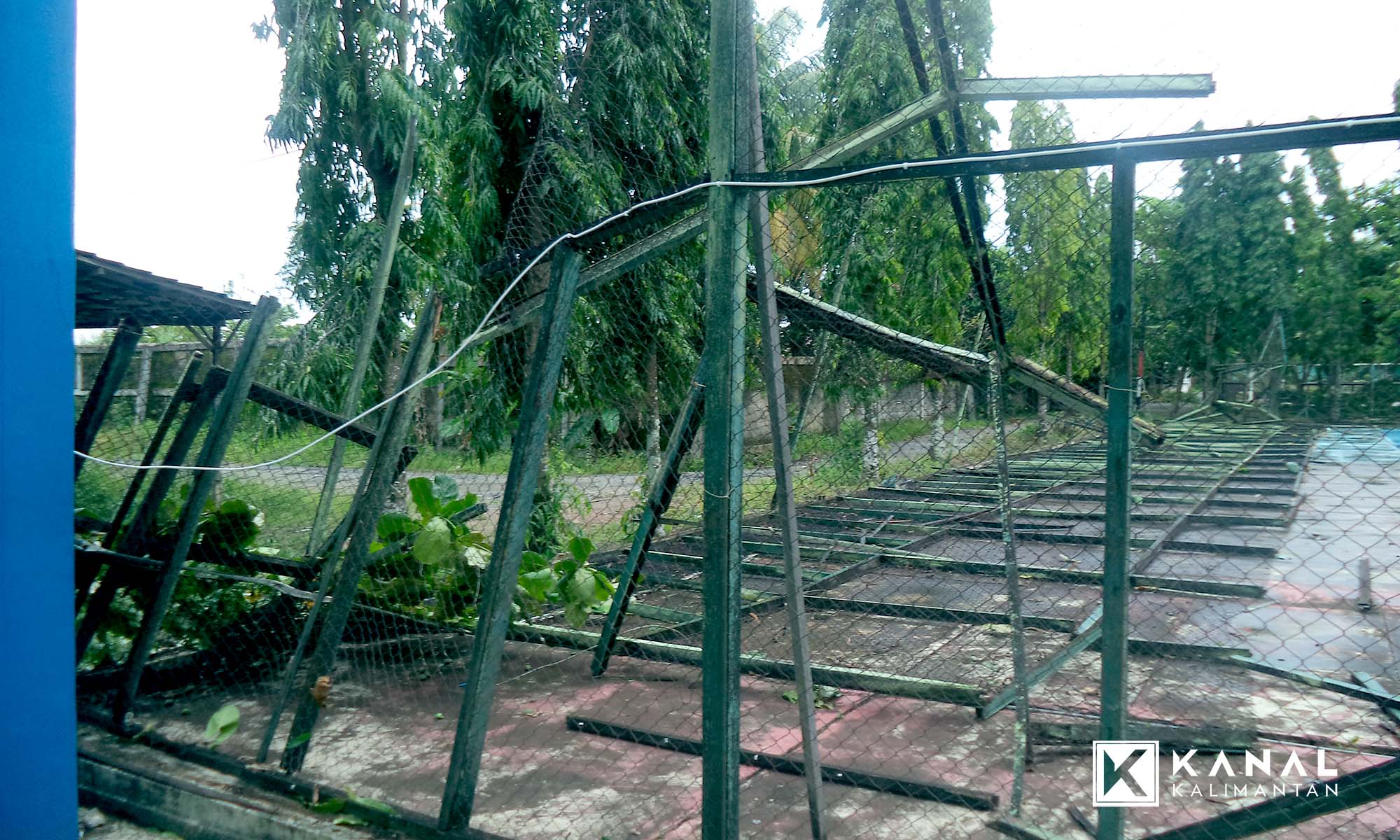 Dihajar Angin Kencang, Kanopi Lapangan Tenis Kayu Tangi Ambruk