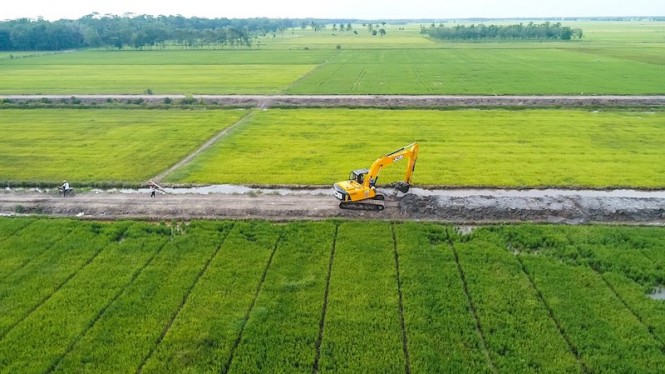 “Dalam waktu tiga minggu ini sedang dilakukan studi dengan luas potensi 164.598 hektare. Dari total jumlah tersebut, lahan yang ada jaringan irigasi sebesar 85.456 ribu hektare dan 57.195 hektare yang sudah dilakukan penanaman padi oleh transmigran dan keluarganya serta ada potensi ekstensifikasi 79.142 hektare,” ujar Airlangga usai menggelar rapat terbatas dengan presiden, Rabu, 13 Mei 2020.