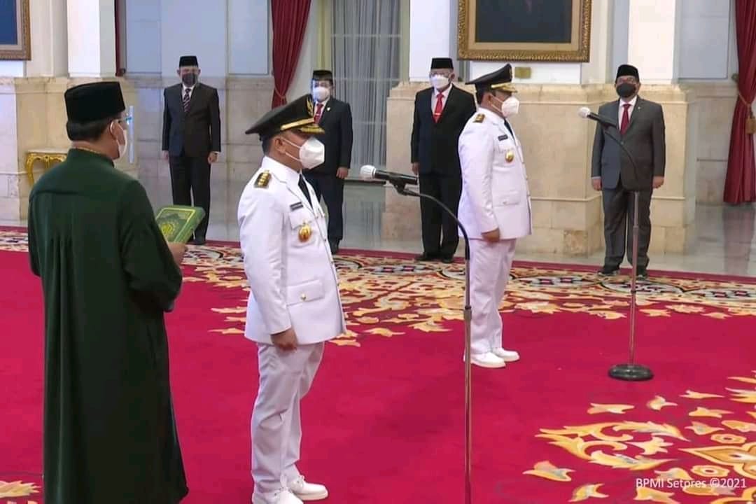 KANALKALIMANTAN.COM, PALANGKARAYA — Presiden Joko Widodo melantik Sugianto Sabran dan Edi Pratowo, sebagai Gubernur dan Wakil Gubernur Kalimantan Tengah periode 2021-2024, di Istana Negara, Jakarta, Selasa (25/5/2021).