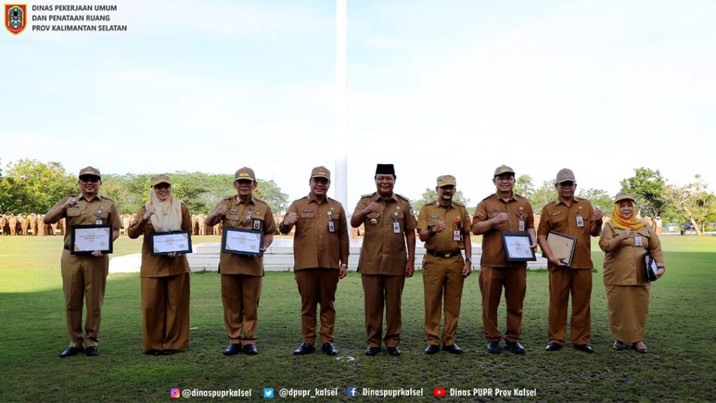 Piagam penghargaan diserahkan langsung oleh Gubernur Kalimantan Selatan H Sahbirin Noor kepada Kepala Dinas PUPR Provinsi Kalsel Ir Ahmad Solhan ST MT.
