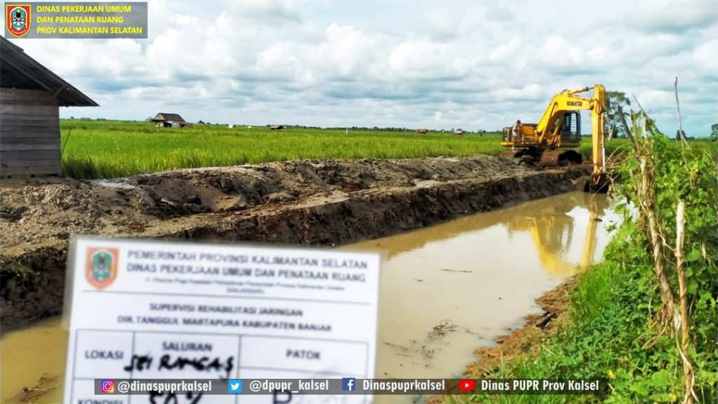 KANALKALANTAN.COM, BANJARBARU – Dinas Pekerjaan Umum dan Penataan Ruang (PUPR) Provinsi Kalimantan Selatan melalui Bidang Sumber Daya Air melakukan rehabilitasi jaringan irigasi (DIR) Tanggul Martapura, Kabupaten Banjar.