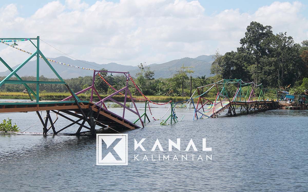 MARTAPURA, Pasca runtuh fasilitas jembatan destinasi wisata air di Danau Tamiyang Desa Mandikapau Barat, Kecamatan Karang Intan, Minggu (17/6), Dinas Pekerjaan Umum dan Penataan Ruang (PUPR) Kabupaten Banjar tawarkan opsi bantuan jembatan gantung sebagai solusi jangka panjang.
