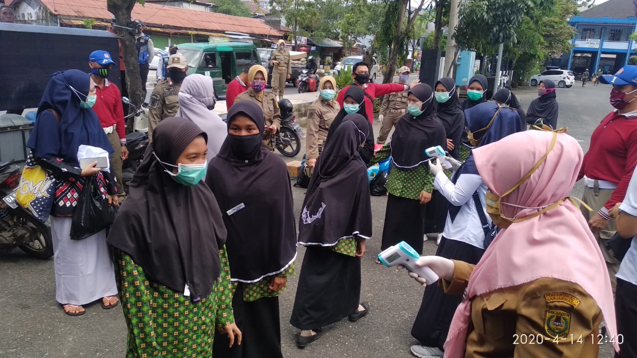 Petugas gabungan sebanyak 200 orang yang terdiri dari Satpol PP, Dinkes Kota Banjarmasin, unsur TNI-Polri serta Gugus Tugas Pencegahan Penanganan Covid-19 Kota Banjarmasin pun dilibatkan dalam mengontrol kepulangan para santri ini. (kanalkalimantan.com/fikri)