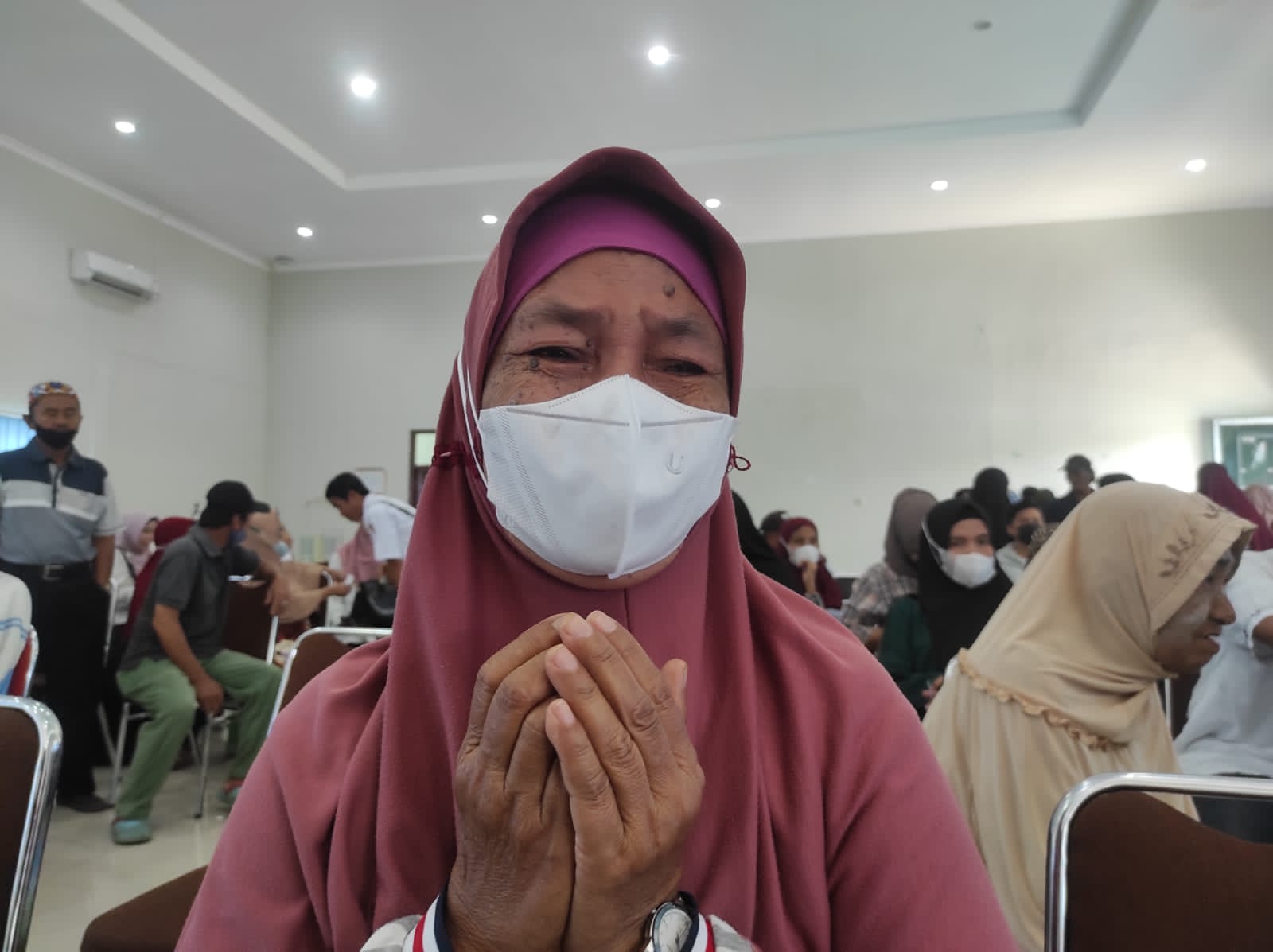 “Sangat gembira dan sangat terharu mendapat bantuan ini, untuk kebutuhan sehari-hari,” ujarnya terlihat meneteskan air mata.