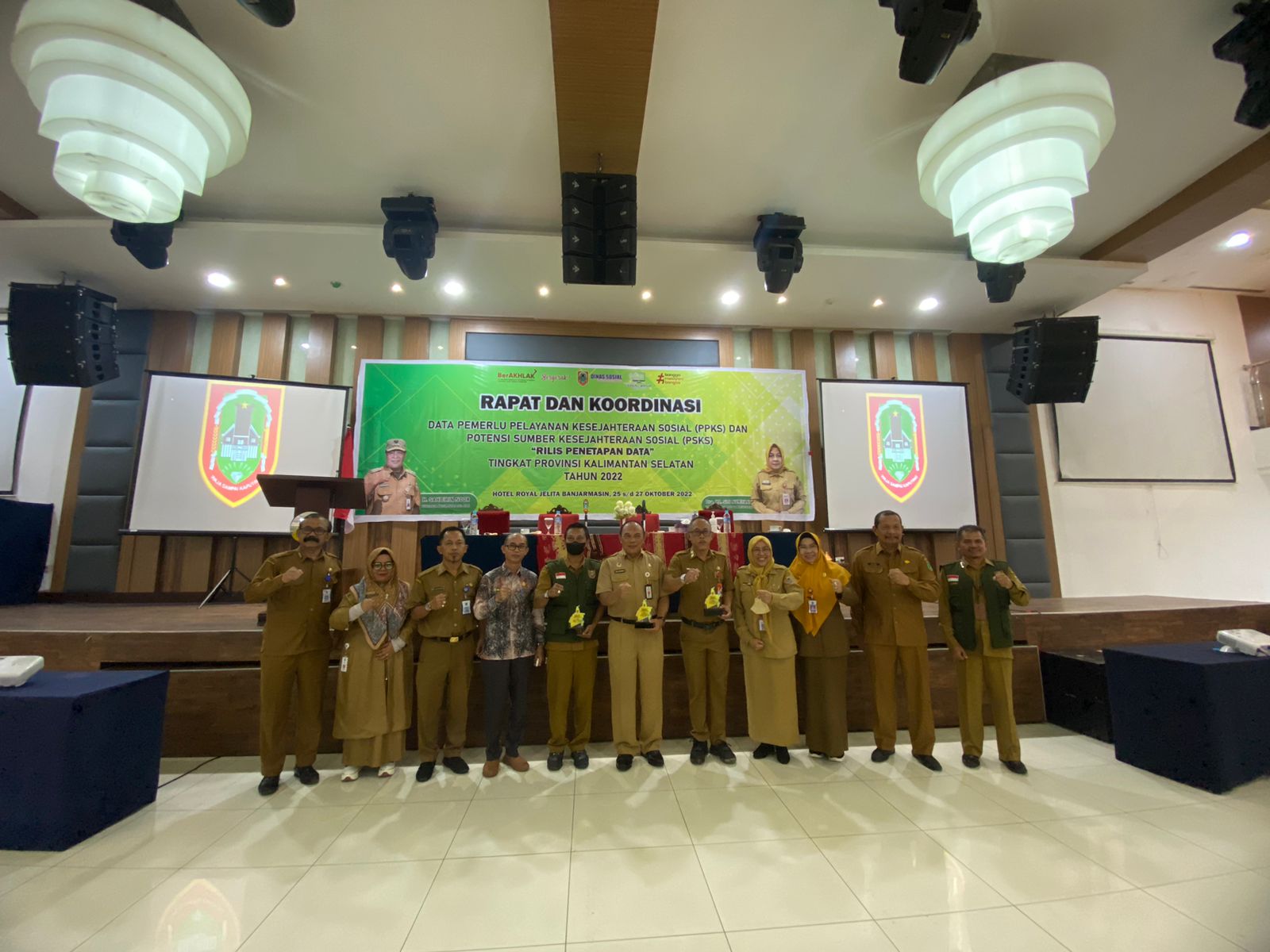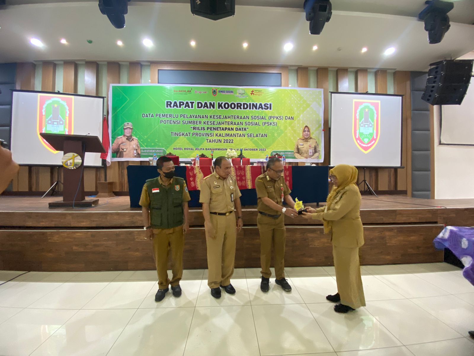 Penghargaan tersebut diberikan bertepatan dengan dilaksanakannya rapat koordinasi antar Kabupaten Kota yang diselenggarakan Dinas Sosial Prov Kalsel di Hotel Royal Jelita Banjarmasin, Rabu (26/10/2022) pagi.