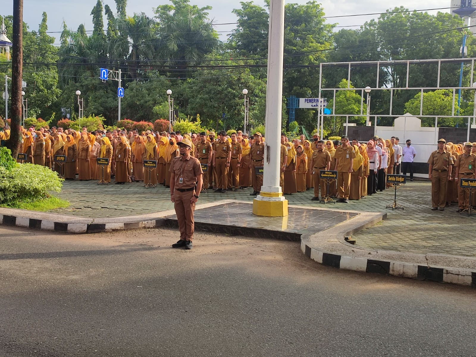Hadir pada apel gabungan ini para Asisten dan Staf Ahli Bupati, Kepala SKPD, pejabat administrator, pejabat pengawas dan fungsional serta staf PNS dan PTT lingkup Pemkab Banjar. (kanalkalimantan.com/dkispbanjar/kk)