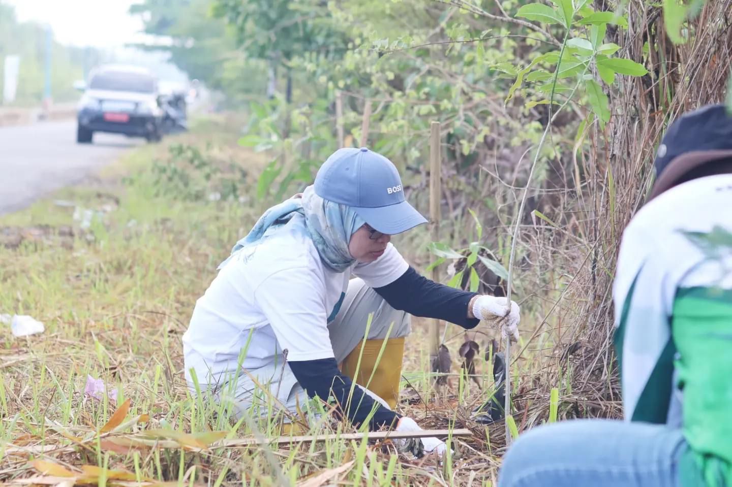 “Diharapannya dengan penanaman jenis bibit bintaro ini dapat menjadi salah satu penyerap Karbon dioksida sehingga membantu mengurangi polusi udara, menghijaukan wilayah sepanjang jalan Guntung Manggis” Kata Kepala Dinas Kehutanan Provinsi Kalsel Fathimatuzzahra. (Kanalkalimantan.com/al)