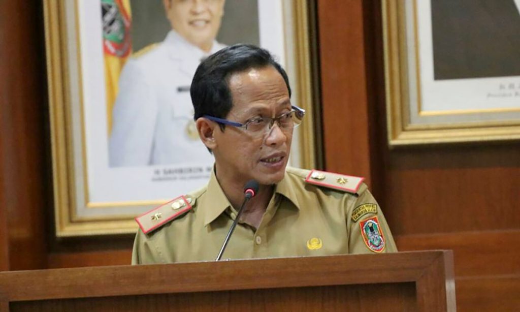 BANJARBARU, Kepala Dinas Kehutanan Provinsi Kalimantan Selatan DR. Hanif Faisol Nurofiq, S.Hut, MP mensosialisasikan Perda Prov Kalsel No. 7 Tahun 2018 tentang Gerakan Revolusi Hijau dihadapan seluruh para tamu undangan yang berhadir di Gedung Abrani Sulaiman Sekretariat Daerah Prov Kalsel, Banjarbaru, Senin (4/6).