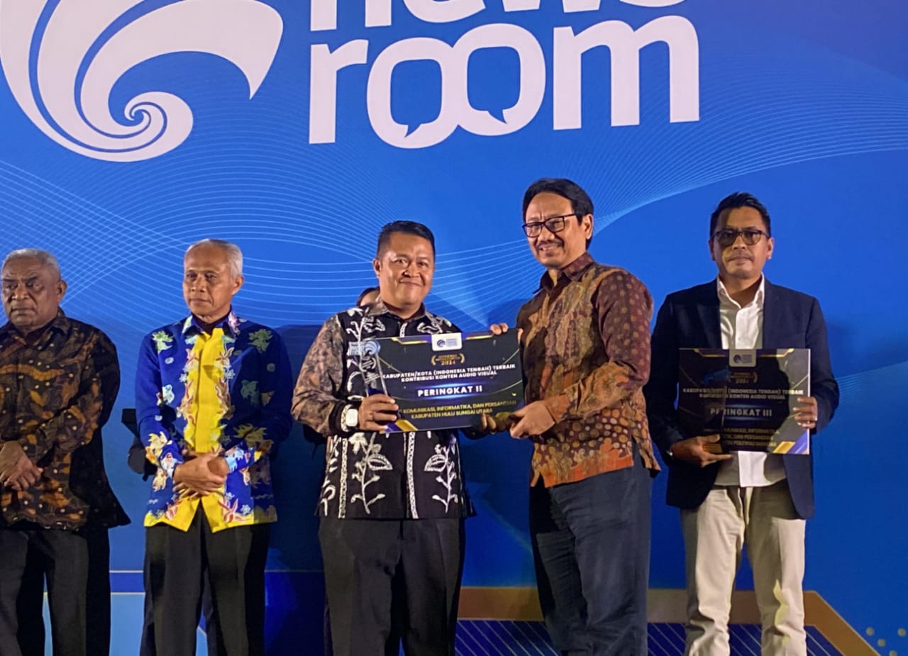 KANALKALIMANTAN.COM, BANDUNG – Dinas Komunikasi Informatika dan Persandian (Diskominfosandi) Kabupaten Hulu Sungai Utara (HSU) meraih penghargaan peringkat kedua dari Kementerian Kominfo RI, dalam acara malam Anugerah Media Center (AMC) 2024.
