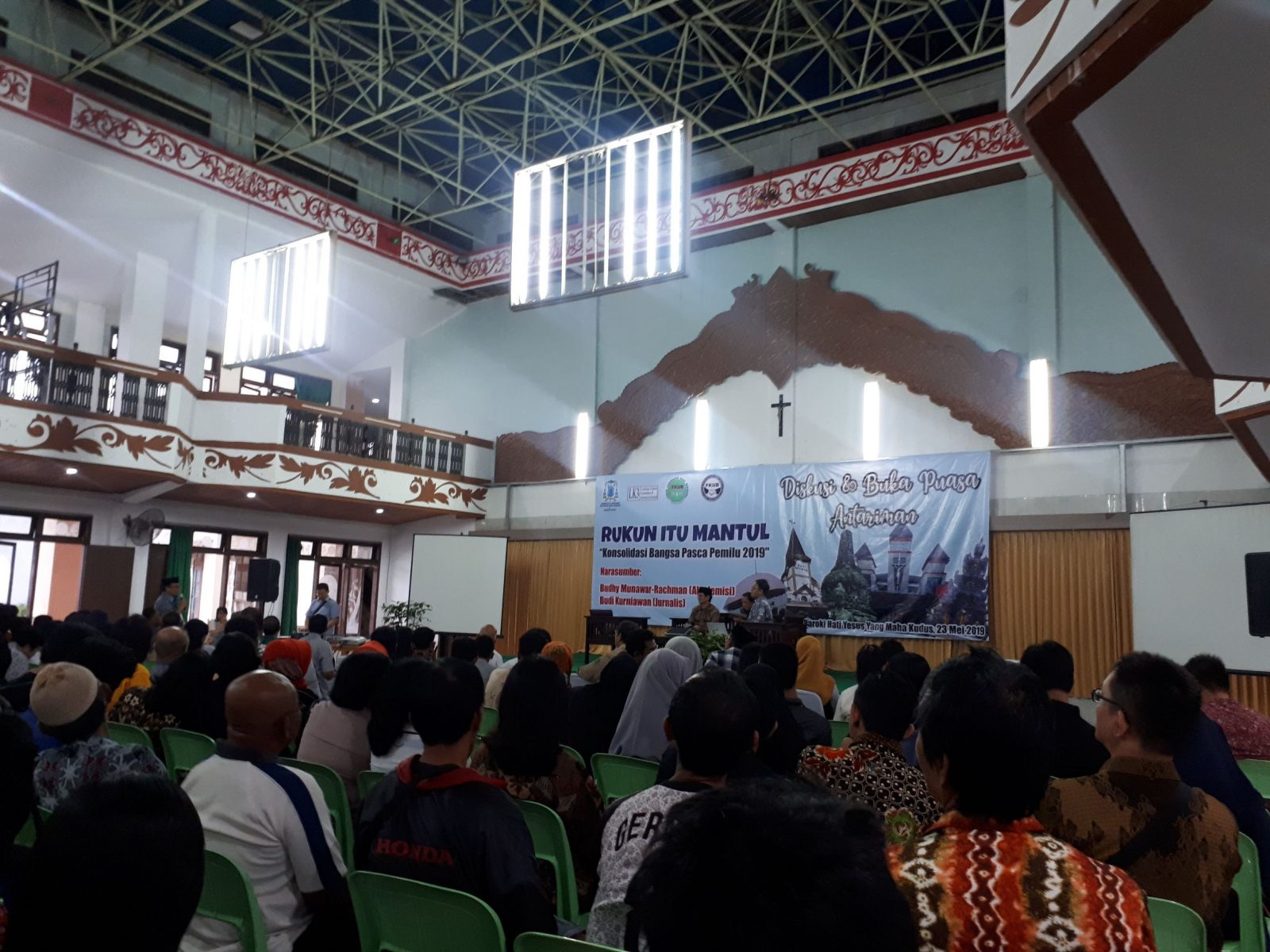BANJARMASIN, Lembaga Kajian Keislaman dan Kemasyarakatan (LK3) mengadakan diskusi dan Buka Puasa Antariman bertepat di Aula Paroki Hati Yesus yang Maha Kudus, jalan Veteran, Kamis (23/5) sore. Diskusi mengakat tema Rukun Itu Mantul, “Konsolidasi Bangsa Pasca Pemilu 2019.â€Â