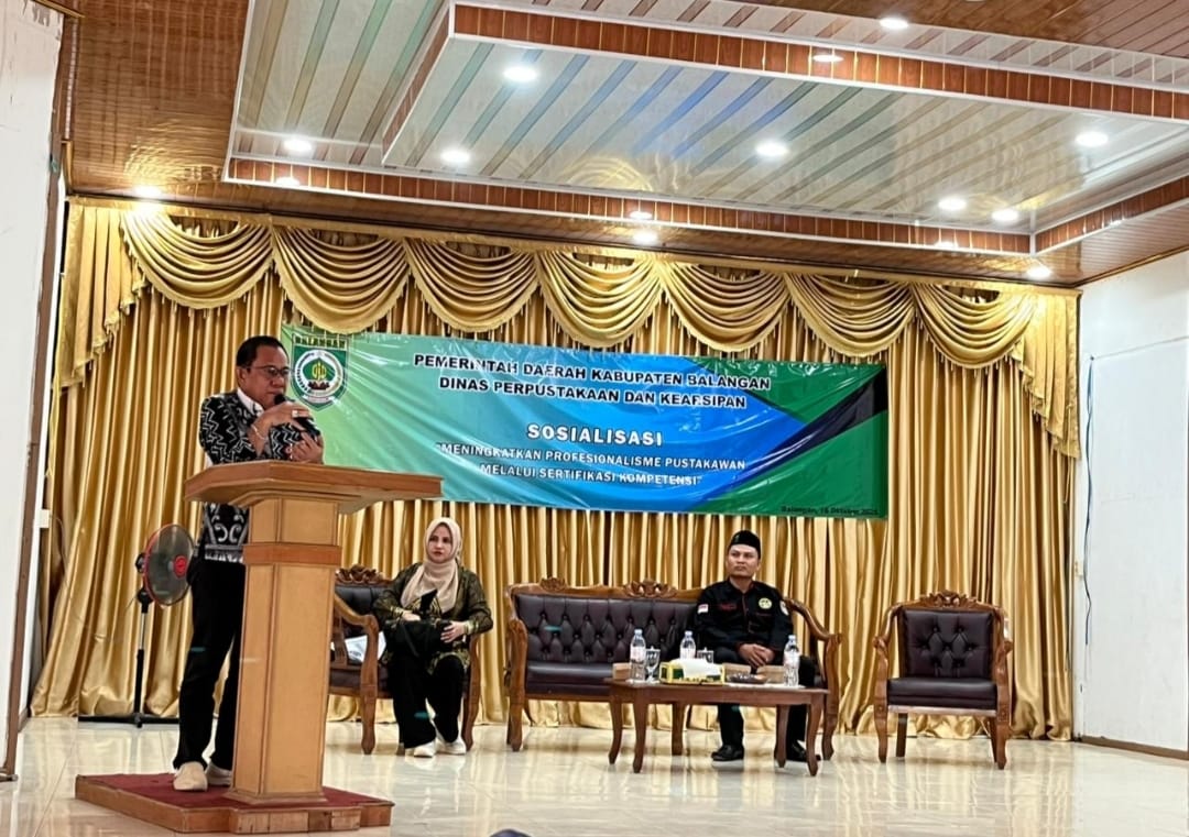 KANALKALIMANTAN PARINGIN – Dinas Perpustakaan dan Kearsipan (Dispersip) Kabupaten Balangan menggelar kegiatan sosialisasi peningkatan profesionalisme pustakawan melalui sertifikasi kompetensi di aula Sanggar Kegiatan Belajar (SKB), Kamis (16/10/2025).