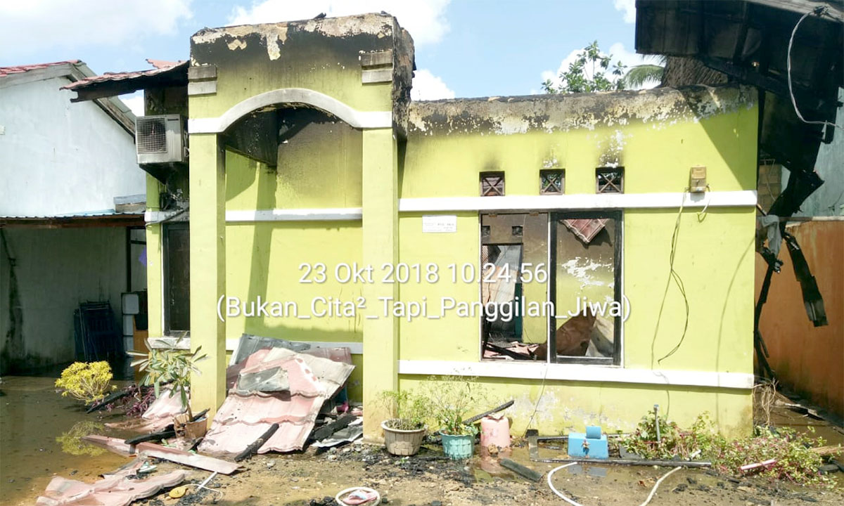 “Dugaan sementara kebakaran yang menghanguskan satu rumah ini diakibatkan korsleting listrik yang bersumber dari atap rumah†ujarnya. (Rico)