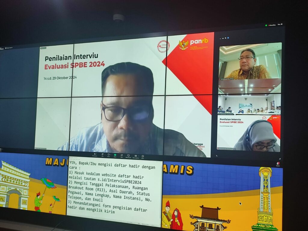 KANALKALIMANTAN.COM, MARTAPURA – Kementerian Pendayagunaan Aparatur Negara dan Reformasi Birokrasi (PAN-RB) menggelar penilaian interviu evaluasi Sistem Pemerintahan Berbasis Elektronik (SPBE) tahun 2024.