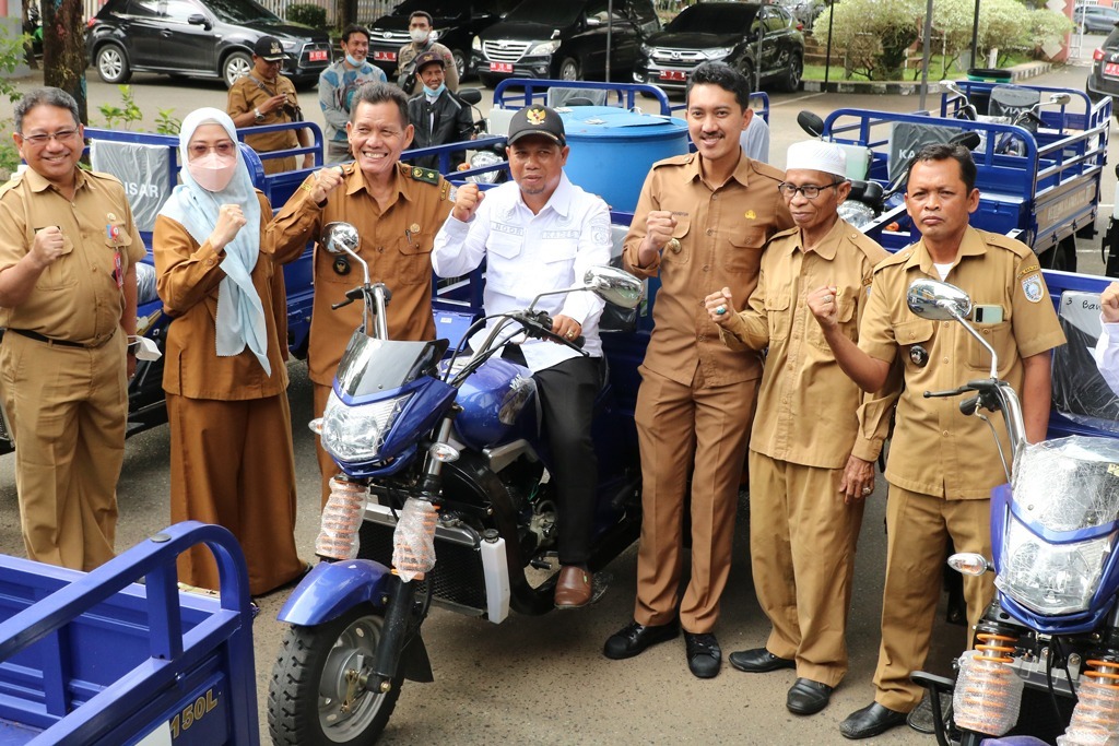 Bantuan sarana pengelolaan sampah berupa 1 unit Pick Up Granmax, 8 unit roda 3 (tosa), 1 unit mesin pencacah, 11 unit gerobak sampah dan 3 unit kontainer untuk ditempatkan disepanjang jalan protokol khususnya Kabupaten Banjar.(Kanalkalimantan.com/kk)