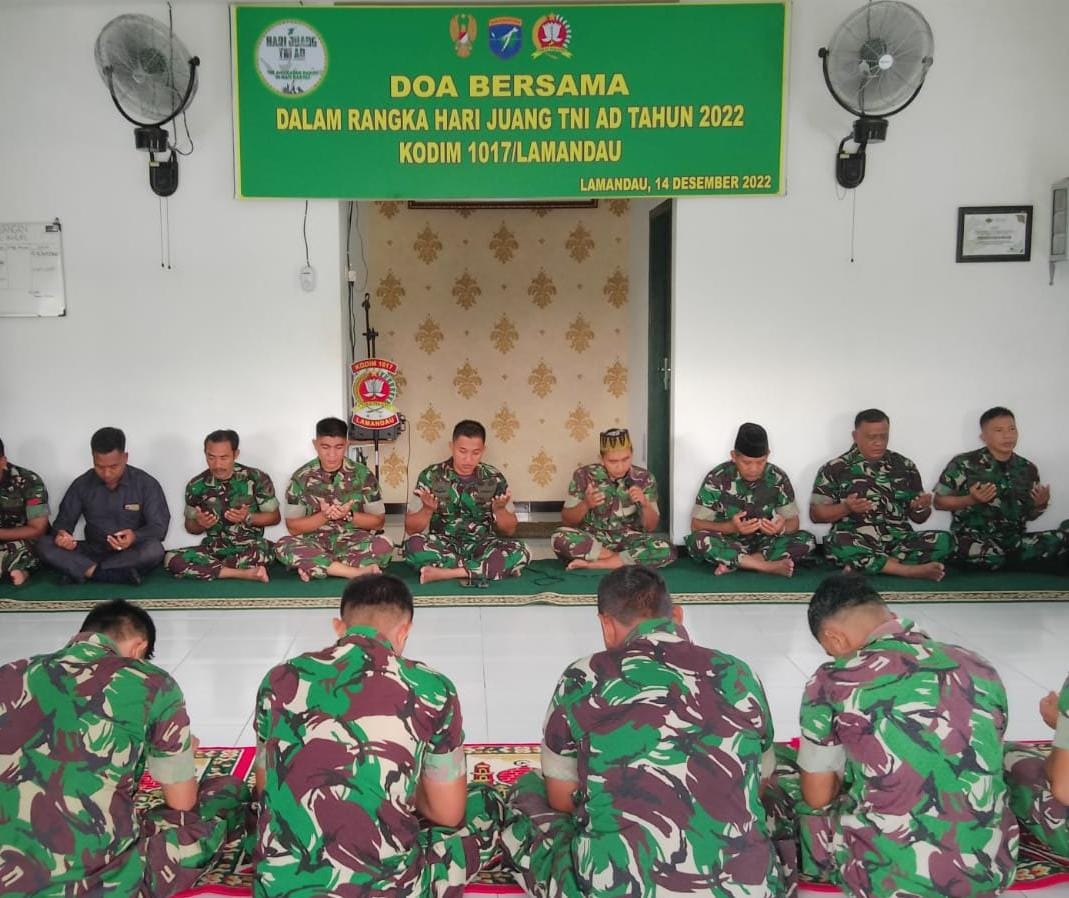 KANALKALIMANTAN.COM, NANGA BULIK –Kodim 1017/Lmd menggelar doa bersama dalam rangka Hari Juang TNI AD ke-77, kegiatan doa bersama dilaksanakan di Mushola Kodim 1017/Lmd, Kabupaten Lamandau, Kalimantan Tengah, Rabu (14/12/2022).