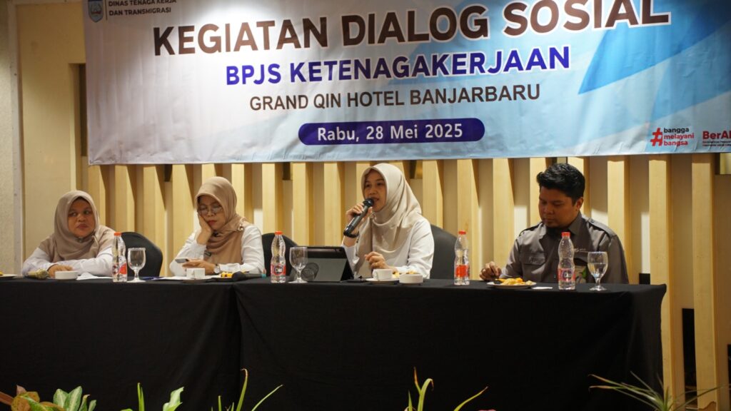 KANALKALIMANTAN.COM, BANJARBARU – Bertujuan untuk meningkatkan kepesertaan BPJS Ketenagakerjaan yang diikuti perusahaan-perusahaan di wilayah Kabupaten Banjar Pemerintah Kabupaten Banjar melalui Dinas Tenaga Kerja dan Transimigrasi (Disnakertrans) menggelar Dialog Sosial BPJS Ketenagakerjaan