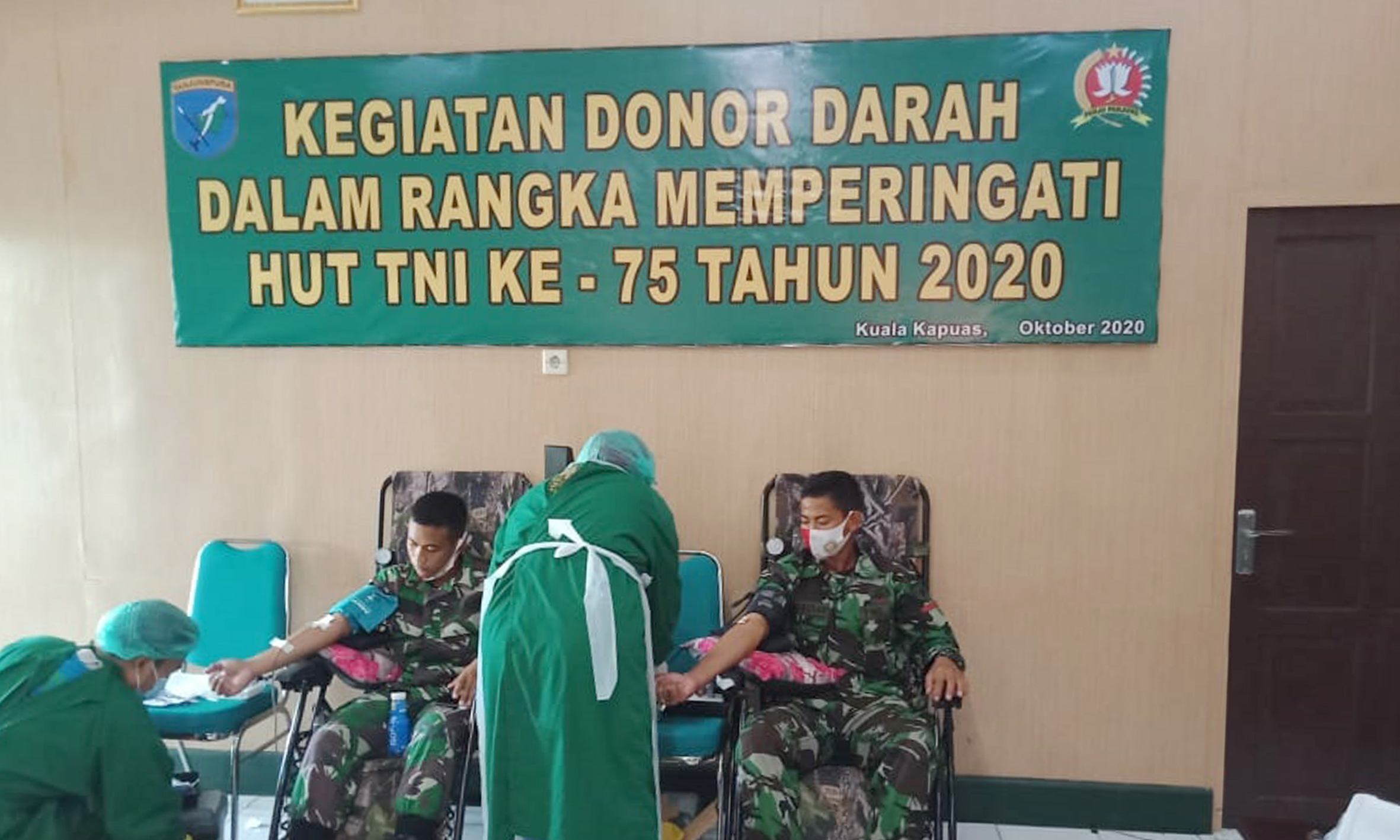 KANALKALIMANTAN. COM, KUALAKAPUAS – Menyambut Hari Ulang Tahun (HUT) ke-75 TNI 5 Oktober, Kodim 1011/Kuala Kapuas (KLK) menggelar kegiatan donor darah menggandeng PMI Cabang dari RSUD dr H Soemarno Sosroatmodjo Kuala Kapuas.
