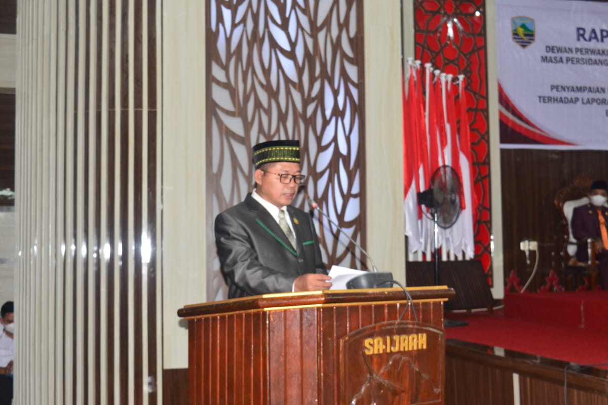 Hal tersebut disampaikan oleh Wakil Ketua DPRD dalam gelaran rapat paripurna masa persidangan ke 3 tahun sidang 2021/2022, dalam rangka penyampaian rekomendasi DPRD terhadap laporan keterangan pertanggungjawaban (LKPJ) Bupati Kotabaru tahun 2021, Senin (25/4/22).