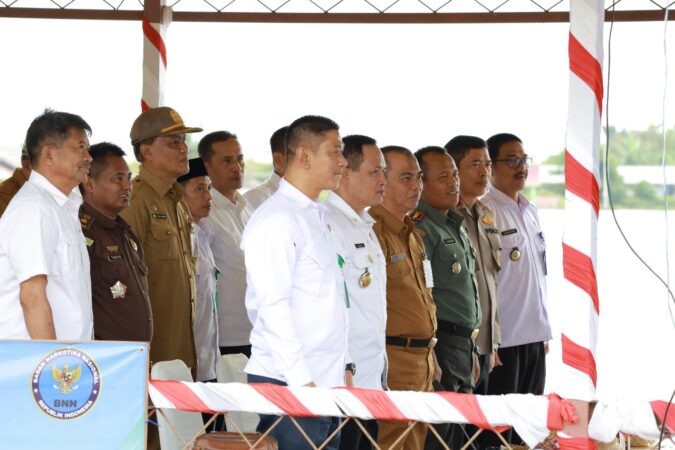 Acara ini merupakan bagian dari peringatan Hari Anti Narkotika Internasional secara daring bersama Badan Narkotika Nasional (BNN) RI dan seluruh Provinsi di pelabuhan seberang kediaman Bupati pada Senin (24/06).