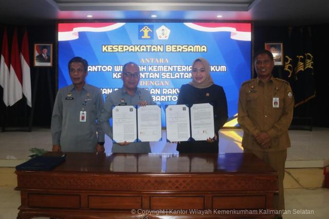 KANALKALIMANTAN.COM, MARABAHAN- Dewan Perwakilan Rakyat Daerah (DPRD) Kabupaten Barito Kuala memperluas perannya dalam pembentukan regulasi dengan menandatangani Kesepakatan Bersama dan Perjanjian Kerja Sama (PKS) bersama Kantor Wilayah Kementerian Hukum dan HAM Kalimantan Selatan, Selasa (30/9/2025). Kerja sama ini mencakup penyusunan peraturan perundang-undangan, pembinaan hukum, analisis kebijakan, serta pelayanan hukum.