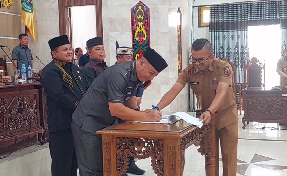 Penandatanganan tersebut dilakukan dalam rapat paripurna ke-4 masa persidangan III tahun sidang 2025 di gedung DPRD Kapuas, Senin (20/10/2025) siang.