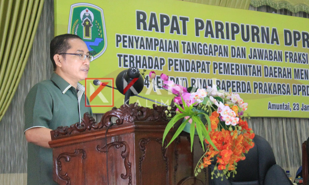 Hal tersebut disampaikan perwakilan dari seluruh fraksi di DPRD HSU H Junaidi saat memberikan tanggapan dan jawaban fraksi DPRD atas pendapat kepala daerah terhadap 4 buah Raperda prakarsa DPRD HSU, Rabu (23/1).