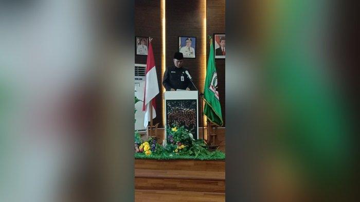 Sekretaris DPRD Kabupaten Barito Kuala (Batola), M. Haris Isroyani, membacakan rancangan surat keputusan DPRD Kabupaten Batola dalam rapat paripurna yang diadakan di Gedung Lantai III DPRD Kabupaten Batola pada Rabu, 25 Oktober 2023.