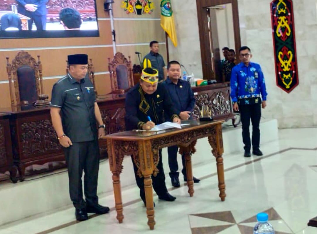 Nota kesepakatan tersebut kemudian dibacakan oleh Pelaksana Tugas (Plt) Sekretaris DPRD Kapuas. Dilanjutkan dengan penandatanganan nota kesepakatan oleh Wakil Bupati Kapuas Dodo mewakili pihak eksekutif, serta mewakili pihak Legislatif oleh Ketua DPRD Ardiansah dan Wakil Ketua I Berinto. (Kanalkalimantan.com/ags)