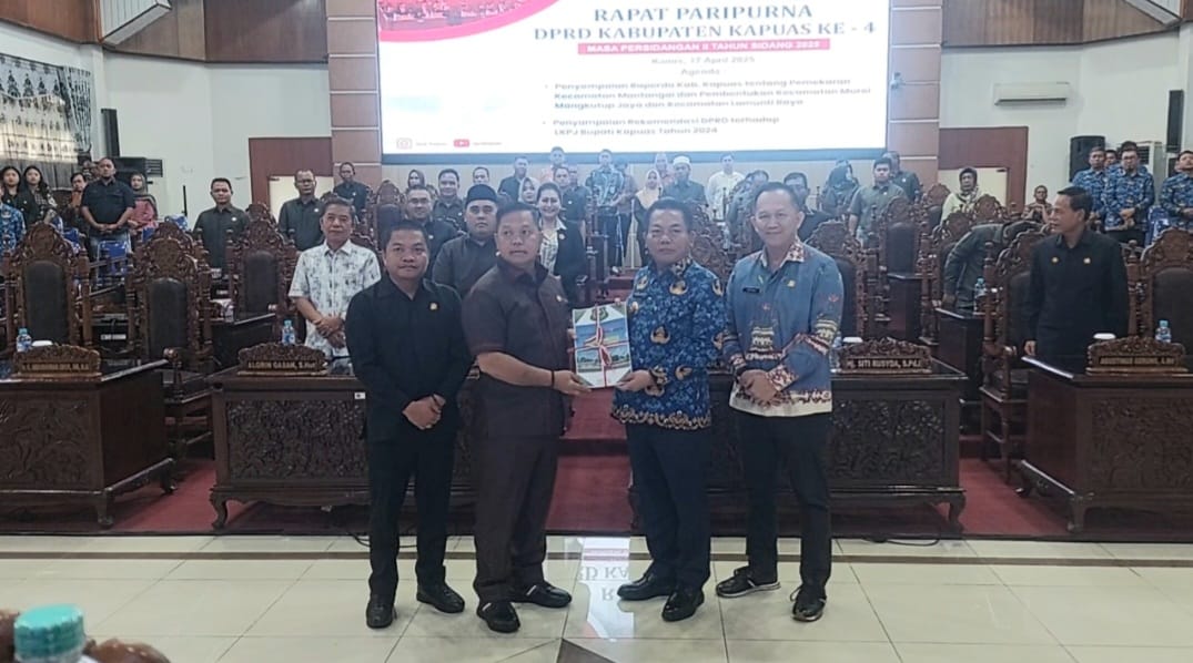 KANALKALIMANTAN.COM, KUALA KAPUAS – Dewan Perwakilan Rakyat Daerah (DPRD) Kabupaten Kapuas secara resmi menerima Rancangan Peraturan Daerah (Raperda) terkait usulan pemekaran dua kecamatan baru dalam Rapat Paripurna Ke-4 Masa Persidangan II Tahun Sidang 2025, Kamis (17/4/2025) siang.