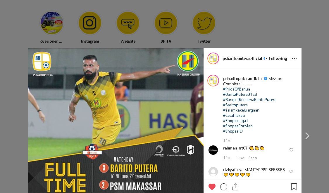Sampai pertandingan selesai, skor 3-2 untuk kemenangan Barito Putera. Dengan hasil ini, PSM turun satu tingkat ke posisi 9 klasemen dengan 43 poin. Sedangkan Barito naik emapt tingkat ke poisis 11 klasemen dengan 40 poin. (bbs)