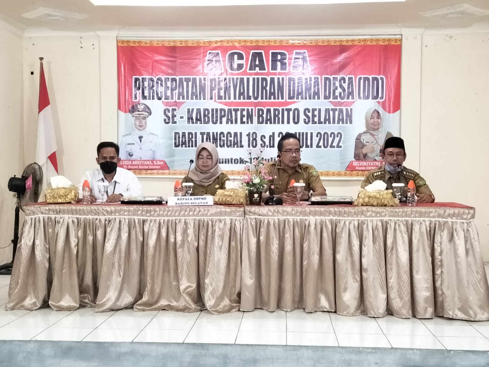 KANALKALIMANTAN.COM, BUNTOK– Dinas Sosial, Pemberdayaan Masyarakat dan Desa (DSPMD) Barito Selatan gelar pelaksanaan percepatan penyaluran Dana Desa (DD) se Kabupaten Barsel, sejak 18-26 Juli 2022. Kegiatan ini dan dilaksanakan di Aula DSPMD mulai Senin (18/7/2022).