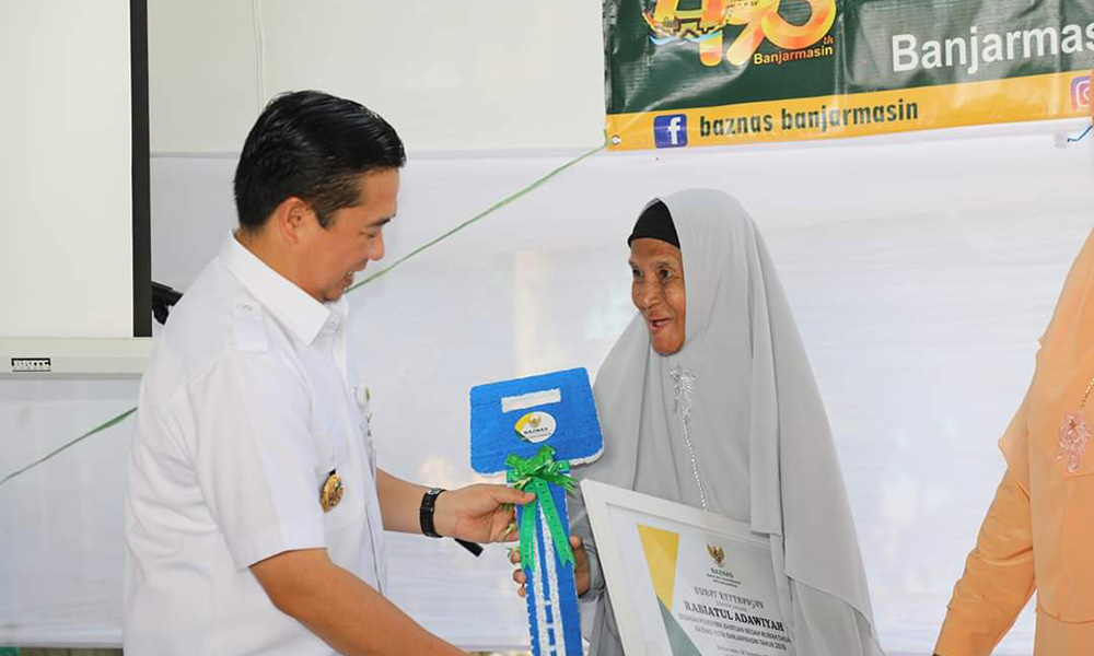BANJARMASIN, Rabiatul Adawiyah, warga Jalan Kelayan A RT 18 RW 02, Kelurahan Kelayan Dalam, dan Jaitun, warga Jalan Rantauan Darat Gang Pembangunan RT 5 RW 01, Kelurahan Kelayan Selatan, terlihat sangat bahagia saat Walikota Banjarmasin Ibnu Sina dan Badan Amil Zakat Nasional (Baznas) Kota Banjarmasin mengunjungi rumah mereka.
