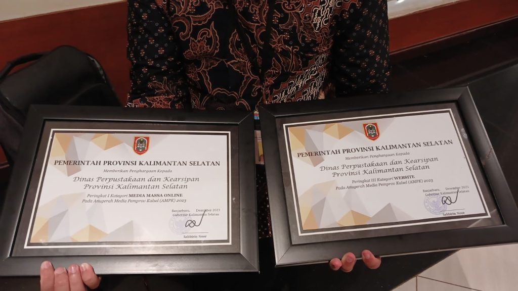 KANALKALIMANTAN.COM, BANJARMASIN – Anugerah Media Pemerintah Provinsi Kalsel (AMPK) 2023 yang diselenggarakan Dinas Komunikasi dan Informatika (Diskominfo) Provinsi Kalsel, Dinas Perpustakaan dan Kearsipan (Dispersip) Provinsi Kalsel berhasil meraih dua penghargaan.