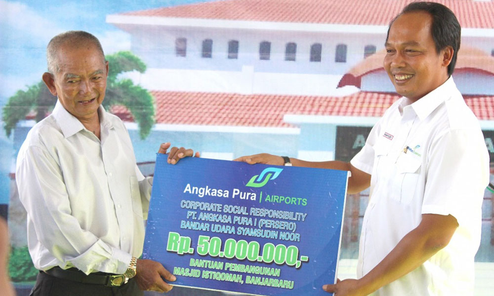 BANJARBARU, Sebagai bentuk tanggung jawab sosial perusahaan dan penyelesaian terhadap langgar yang terkena dampak pembangunan bandara baru, PT Angkasa Pura I (Persero) Bandara Syamsudin Noor ikut menyumbang pembangunan masjid di Tegal Arum, Landasan Ulin, Banjarbaru.