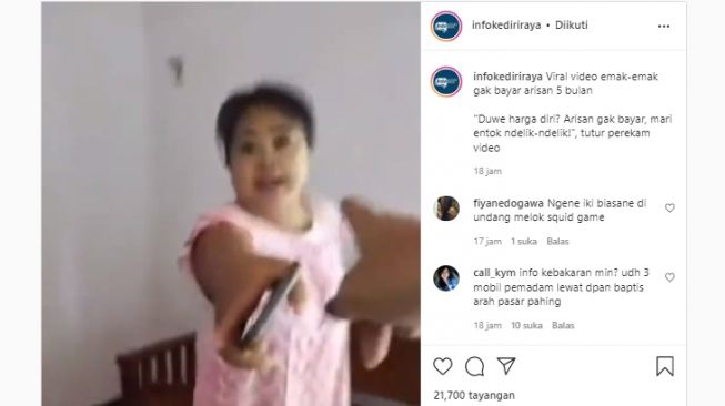 Video tersebut diunggah oleh akun instagram @infokediriraya. Dalam video memperlihatkan seorang ibu-ibu yang mengenakan daster pink sedang marah-marah kepada perekam. Diketahui, ibu tersebut tidak terima ketika ditagih untuk membayar arisan yang sudah menunggah selama 5 bulan.