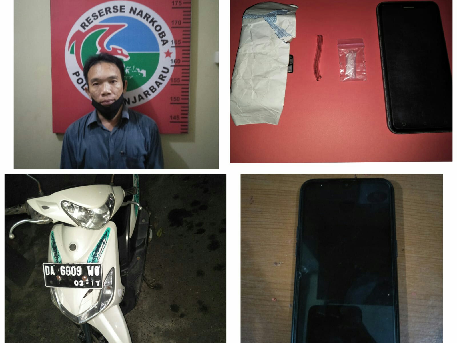 Dari laporan tersebut anggota Sat Resnarkoba Polres Banjarbaru menuju ke lokasi dan mengamankan saksi Muhammad Nurhuda Alias Darkop serta barang bukti berupa 1 lembar plastik klip sabu dengan berat kotor 0,21 gram dan berat bersih 0,05 gram.