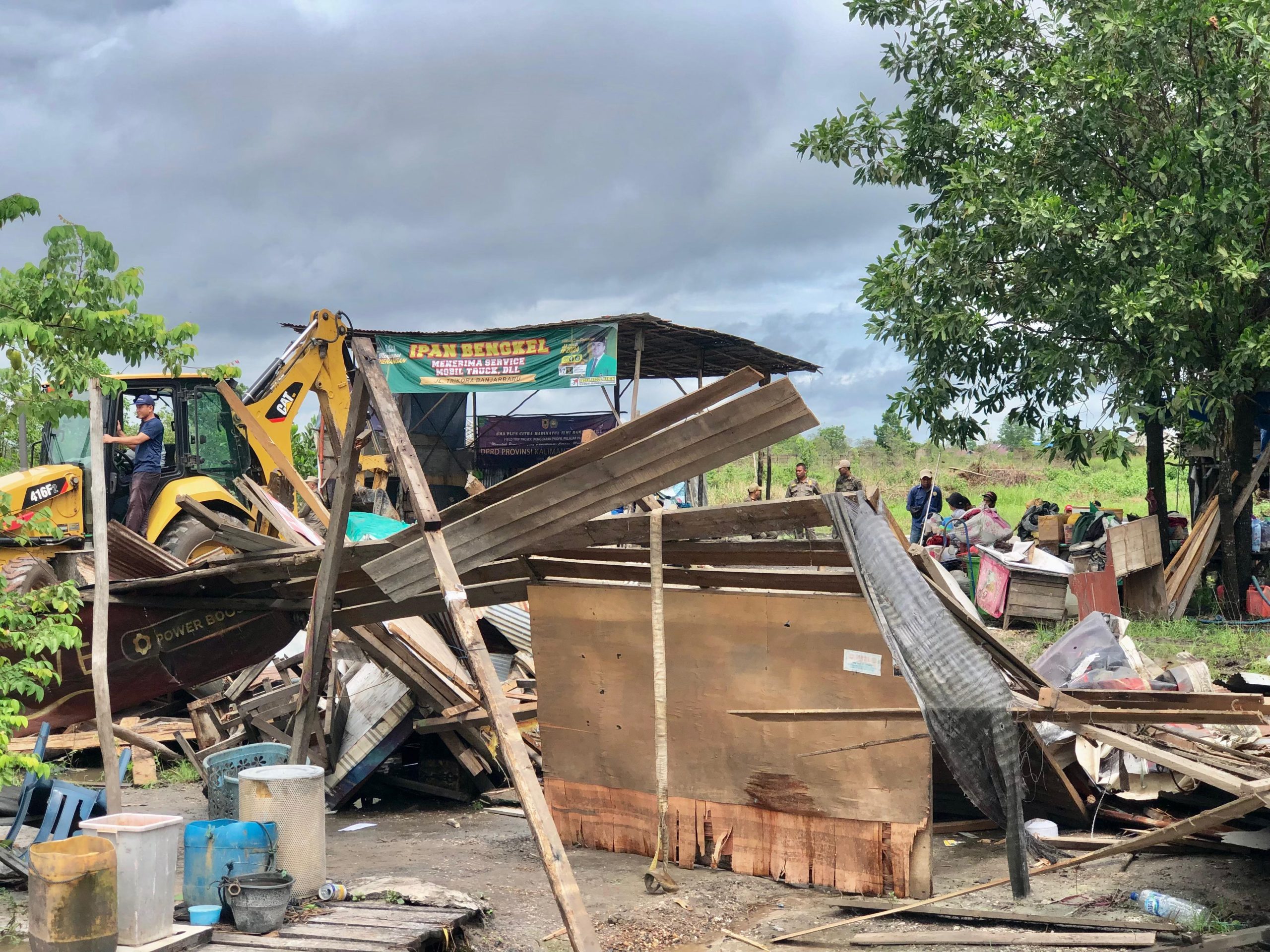 “Karena hujan tadi malam jadi tidak sempat membongkar, tapi sudah dibereskan barang-barang, baju-baju semua,” ucap Aji kepada Kanalkalimantan.com.
