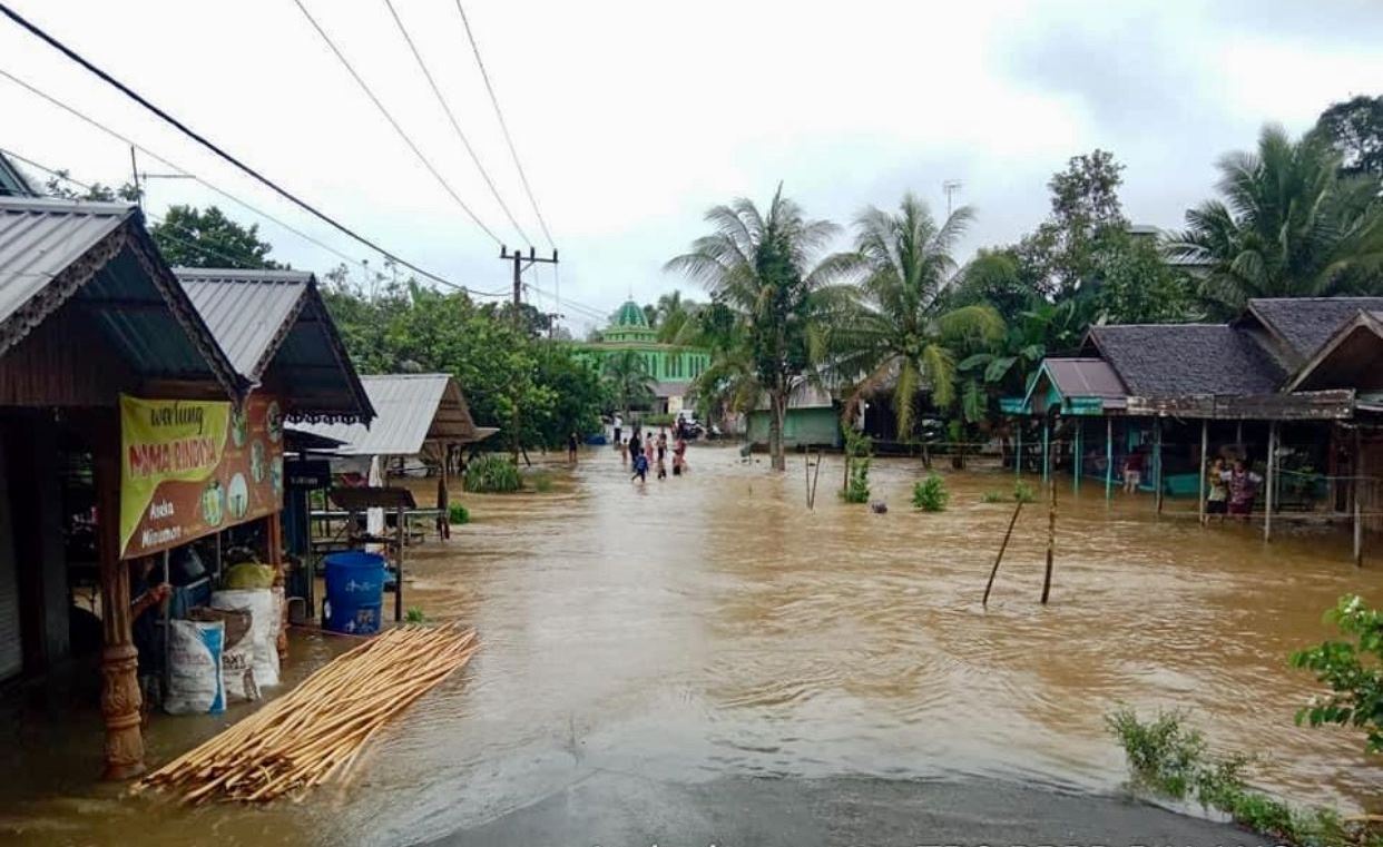 Kondisi banjir di Desa Ambakiang, Kecamatan Awayan, Kabupaten Balangan. Foto: mcbalangan