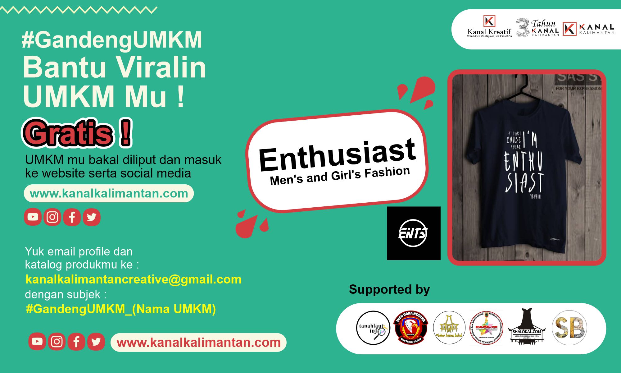 ENTHUSIAST BDJ dimiliki secara bersama Rahmatullah dan Chairil Ahmad Kasyan, bisnis clothing ini beralamat di jalan Manggis Gang Delima Ujung No 66, RT 27 RW 02, Kelurahan Kuripan, Kecamatan Banjarmasin Timur, Kota Banjarmasin.