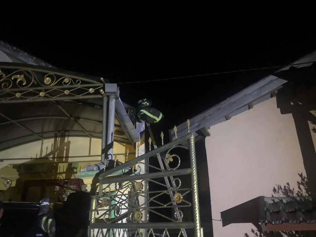 KANALKALIMANTAN.COM, MARTAPURA – UPT Damkar Banjar mengevakuasi sarang tawon jenis vespa affinis di atas atap teras rumah Ahmad, jalan Budi Waluyo komplek Pratama 1 no.10 Kelurahan Sungai Ulin, Kecamatan Gunung Ronggeng, Kamis (24/9/2020) malam.
