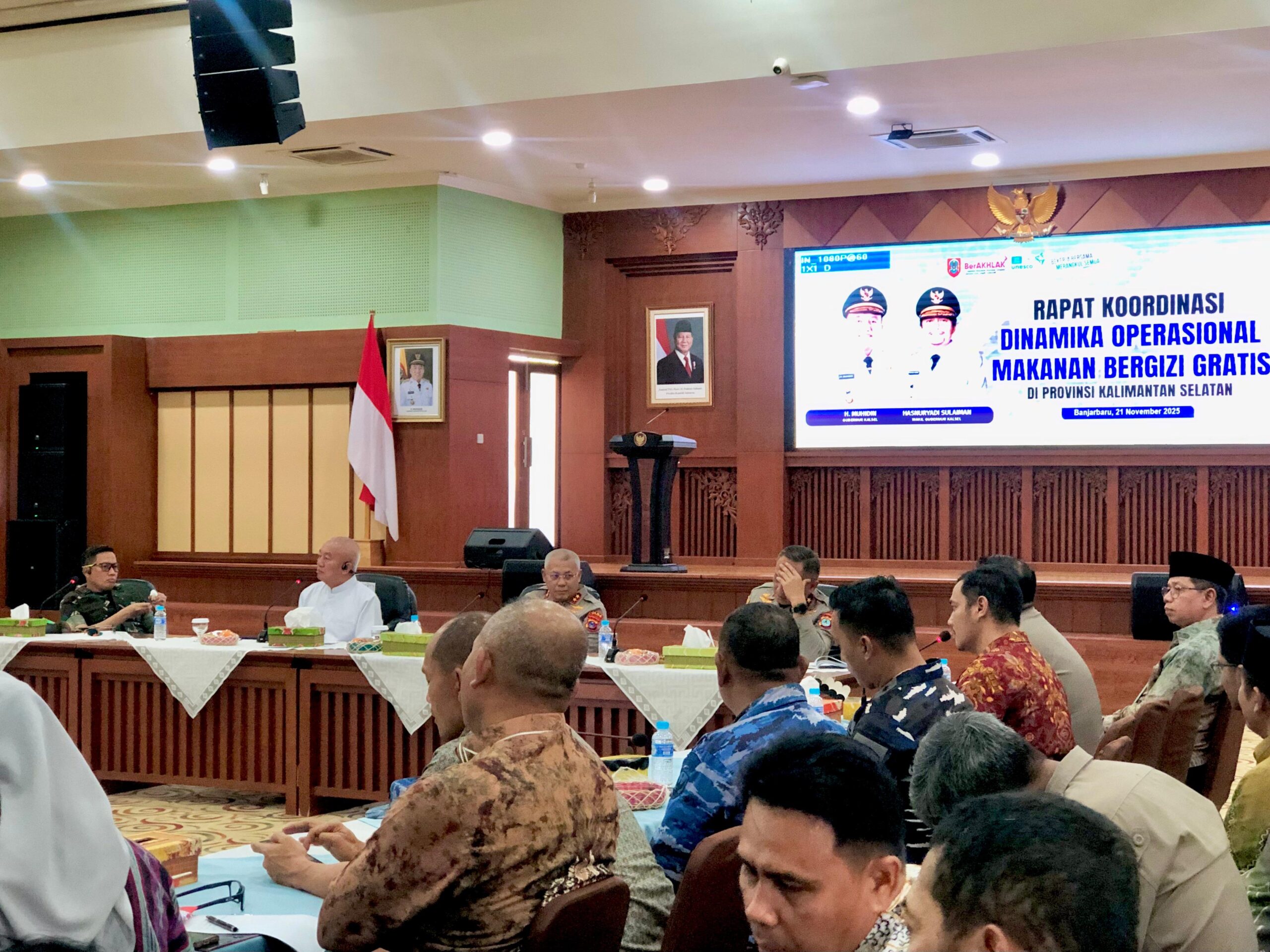 KANALKALIMANTAN.COM, BANJARBARU – Pemerintah Provinsi Kalimantan Selatan mengevaluasi pelaksanaan program Makan Bergizi Gratis (MBG) yang sudah berjalan tujuh bulan operasional dapur-dapur MBG di 13 kabupaten dan kota se Kalsel, Jumat (21/11/2025).