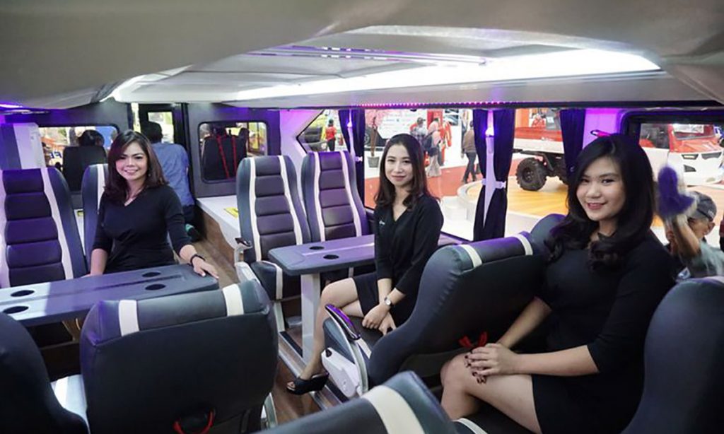 Layanan bus-bus premium dengan fasilitas layaknya di pesawat kini mulai banyak ditawarkan para perusahaan otobus (PO). Fasilitas tersebut mulai dari toilet hingga monitor layar sentuh di tiap-tiap headrest kursi. Selaku salah satu karoseri ternama di tanah air, Laksana turut hadir memamerkan bus dengan fasilitas bak pesawat buatannnya di gelaran Gaikindo Indonesia International Auto Show (GIIAS) 2018. Di booth-nya, Laksana memamerkan bus tingkat yang menggunakan sasis dan mesin Scania K360.