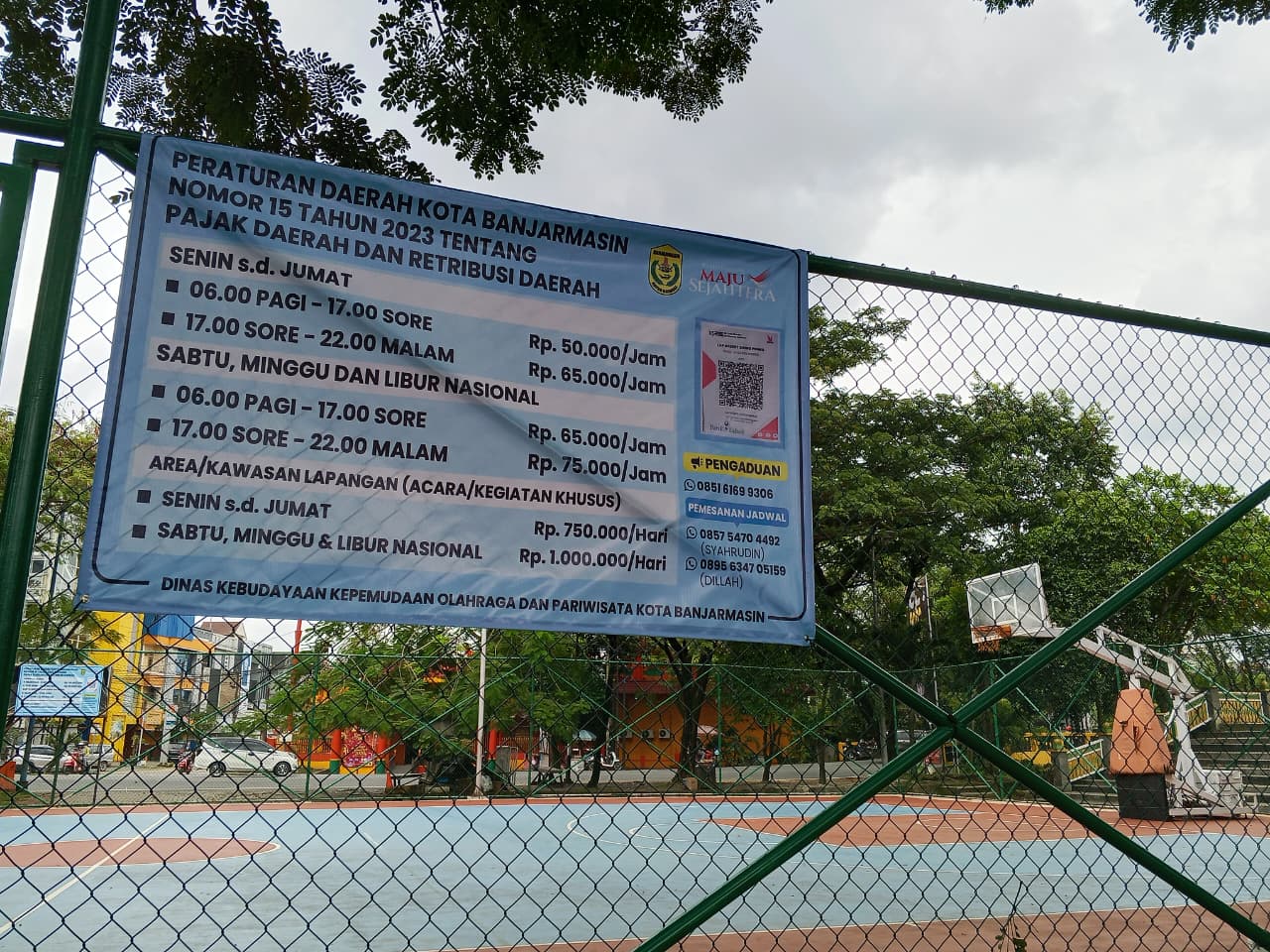 Ya, kemunculan spanduk tarif alias sewa lapangan basket di kawasan Siring Maskot Bekantan mulai diberlakukan sejak terpasang mulai Senin (26/1/2026).