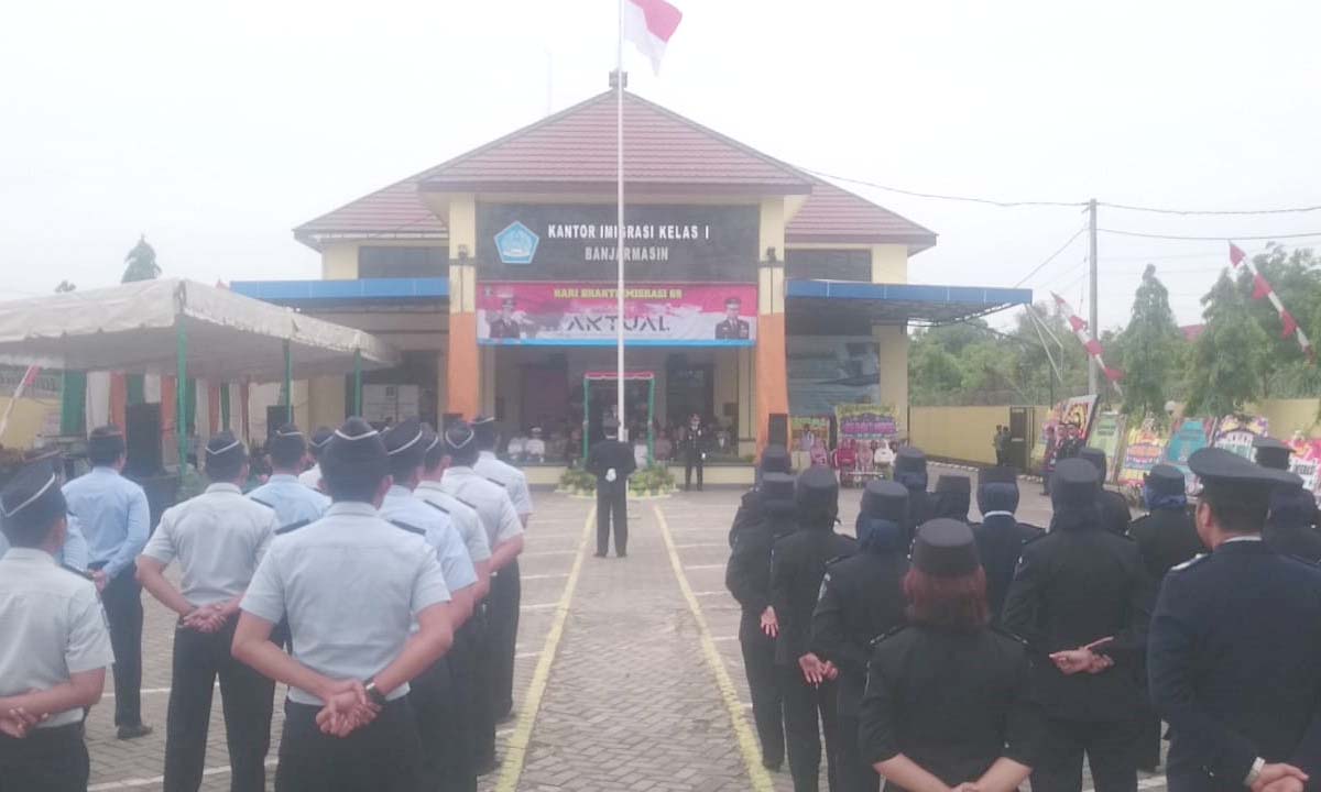 BANJARBARU, Bertempat di Kantor Imigrasi Kelas I TPI Banjarmasin dilaksanakan Upacara Hari Bhakti Imigrasi (HBI) Tahun 2019 yang ke-69, Senin (28/1) pagi. Upacara puncak HBI dihadiri para pimpinan tinggi pratama, pejabat administrator, pengawas dan Kepala UPT Pemasyarakatan dan Imigrasi se-Kalsel, dan para undangan dari Kepolisian, Kejaksaan, Pengadilan, Ombudsman, TNI dan rekan-rekan media.