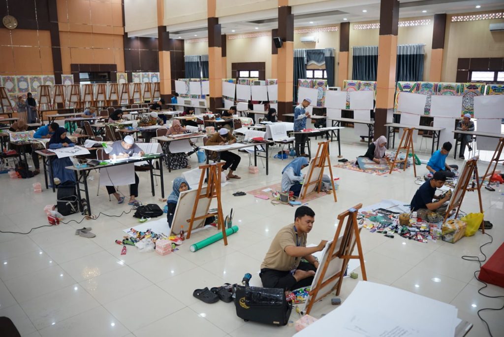 Puluhan finalis dari empat golongan, yakni kaligrafi naskah, dekorasi, kontemporer, dan hiasan mushaf telah menyelesaikan sebagian besar karya mereka dalam batas waktu delapan jam yang diberikan panitia.