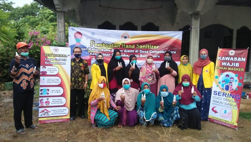 Mencuci atau membersihakan tangan bisa menggunakan sabun atau hand sanitizer. Hand sanitizer dipilih karena lebih praktis dan bisa dibawa kemana mana. Tim Pengabdi Fakultas MIPA ULM yang diketuai Noer Komari, S.Si, M.Kes dengan 4 orang anggota tim antara lain Dwi Rasy Mujiyanti, S.Si, M.Si, Dewi Umaningrum, S.Si, M.Si, Dahlena Ariyani, S.Si, M.S dan Drs. Taufiqur Rohman, M.Si, telah membagikan ilmunya tentang pembuatan hand sanitizer dari bahan alami kepada masyarakat desa Cempaka Baru, Banjarbaru. Kegiatan dilaksanakan tanggal 13 dan 14 November 2020 diikuti 15 orang ibu-ibu dari kelompok Sasirangan.