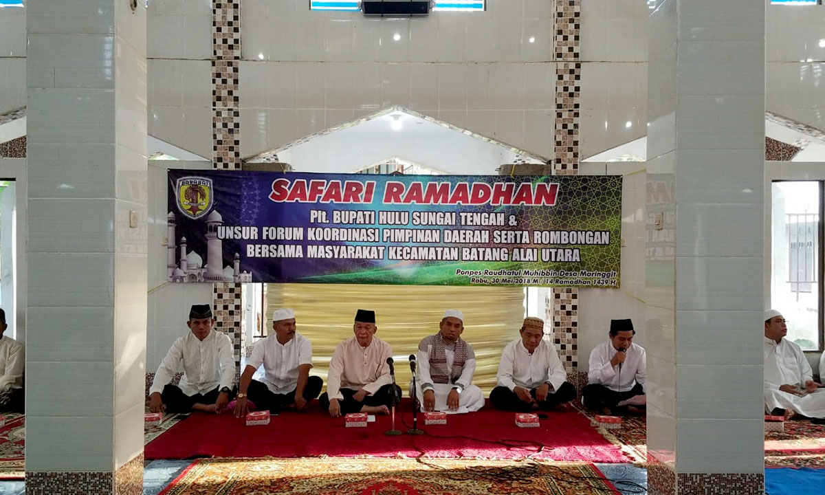Bertempat di Pondok Pesantren Raudhatul Muhibbin Desa Maringgit, Kecamatan Batang Alai Utara, berlangsung acara Safari Ramadhan oleh Forkopimda Kabupaten Hulu Sungai Tengah (HST), Rabu (30/5).