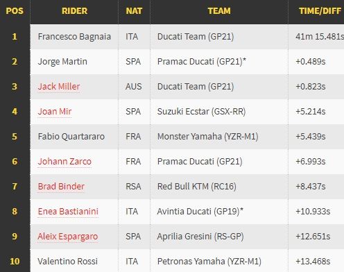 Hasil MotoGP Valencia, Minggu (14/11/2021) malam WIB (10 Besar):