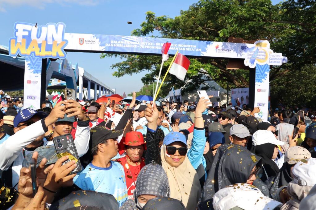 “Peserta Fun Walk hari ini hampir 10 ribu orang. Kegiatan ini merupakan puncak peringatan Harjad ke-75 Kalsel, sekaligus launching program Identitas Kependudukan Digital merangkul semua dari Disdukcapil Kalsel,” ujar Fitri.